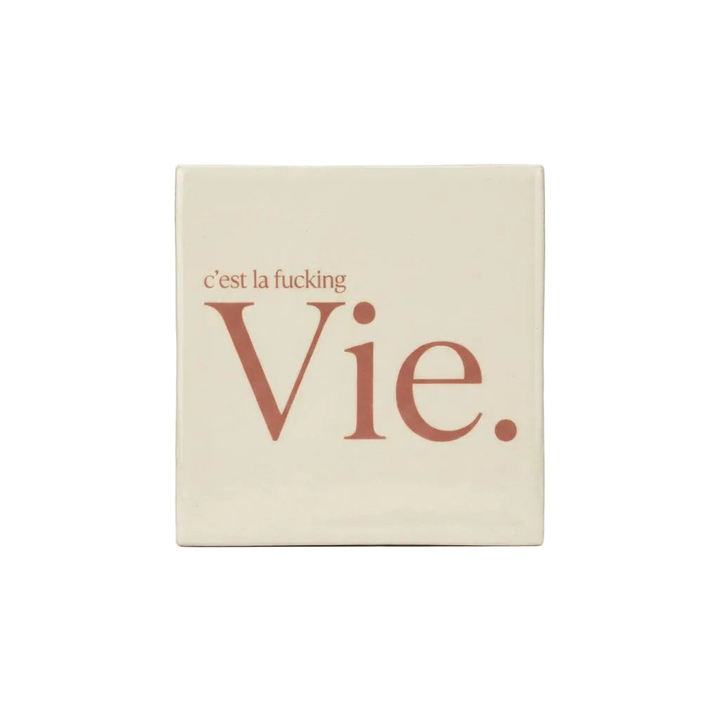Voor de levensgenieters, de optimisten of als vrolijk cadeau: dit tegeltje brengt de sfeer van C'est la fucking vie tot leven in je interieur. Met een speelse Franse tekst en charmante illustratie is dit tegeltje een perfecte decoratie voor in de keuken, woonkamer of hal. Een knipoog naar het leven zoals het is - met al zijn ups en downs - en de kunst om er toch het beste van te maken.