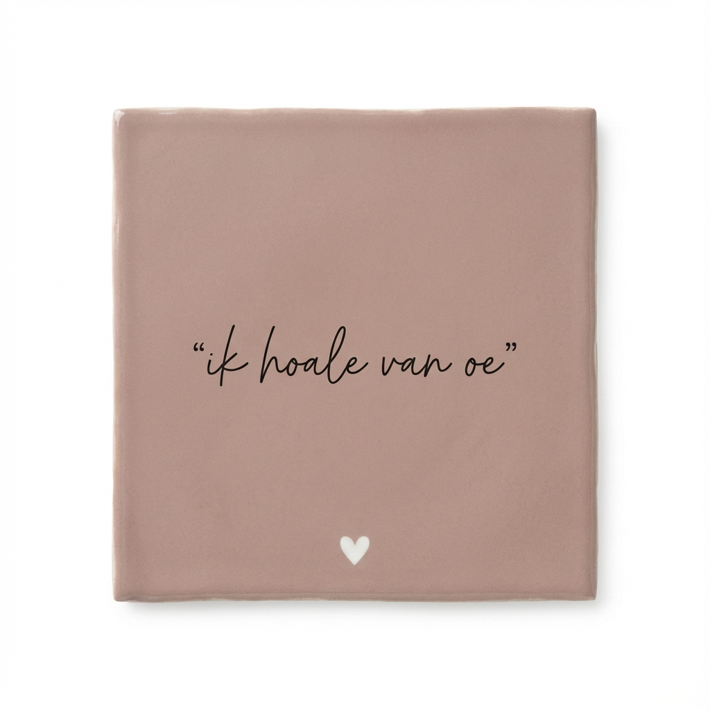 Soms zijn drie woorden genoeg, zeker als ze in je eigen streektaal worden gezegd. Dit stijlvolle keramieken tegeltje met de tekst "ik hoale van oe" is een puur en liefdevol gebaar. Het is het perfecte geschenk voor een huwelijk, een jubileum, Valentijnsdag, of gewoon om iemand te laten weten hoe speciaal ze voor je zijn.