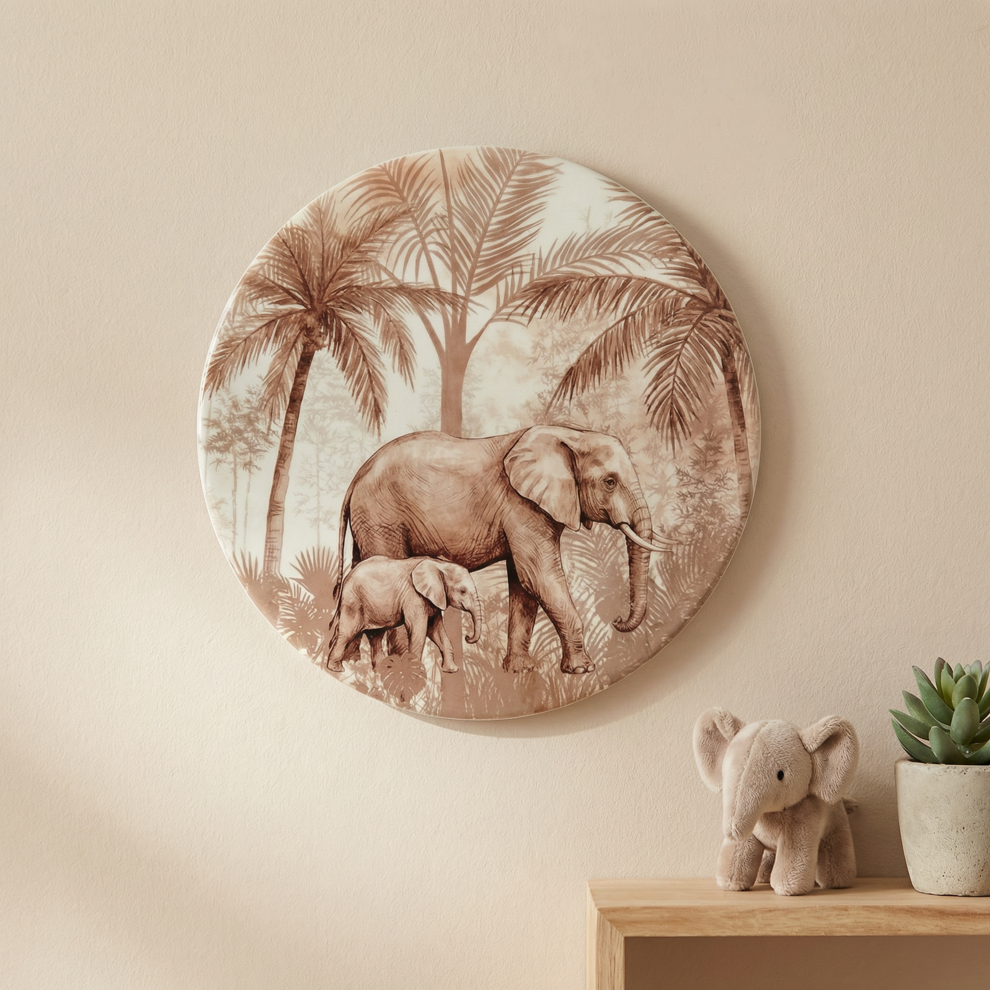 Breng kracht en wijsheid in huis met deze charmante ronde tegel met olifanten. Een symbool van geluk, familie en bescherming.
