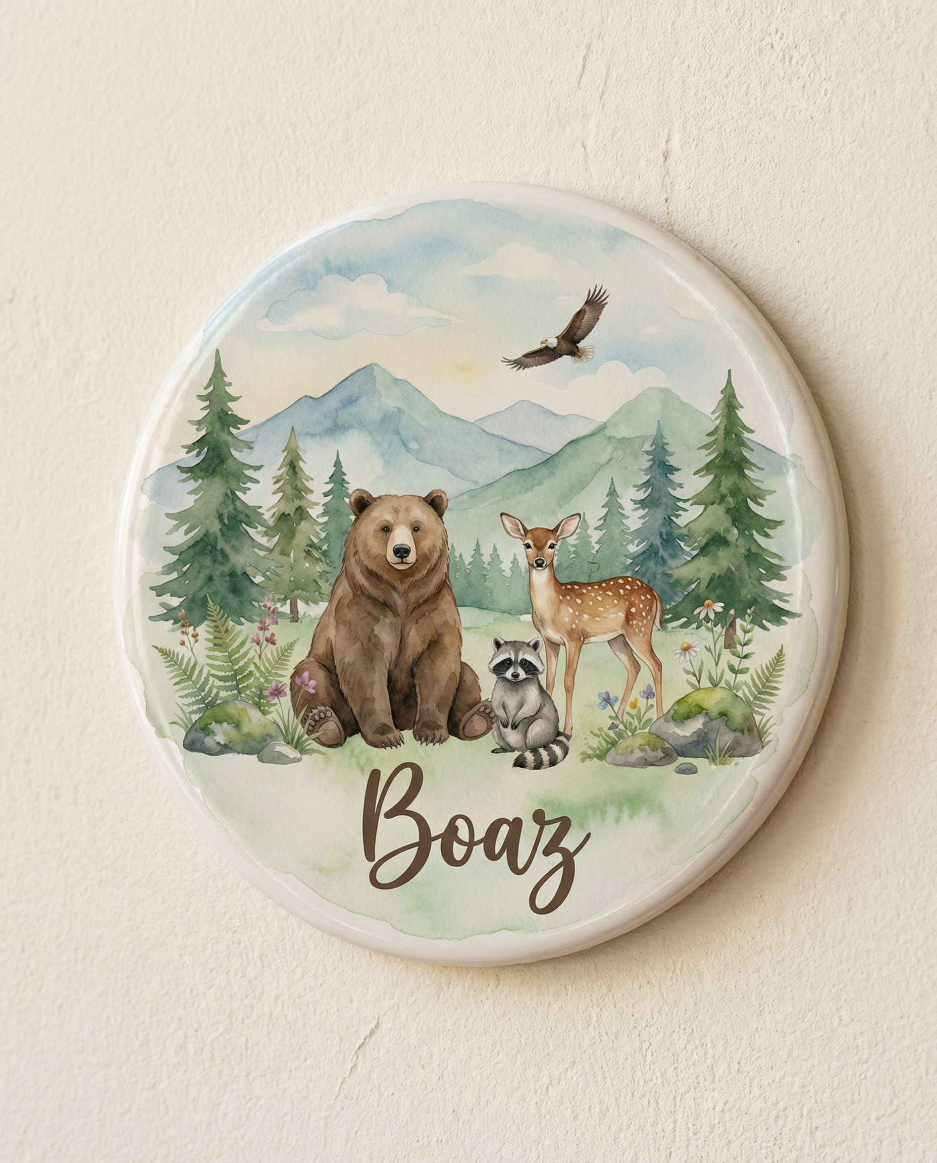Ronde Tegel Bosdieren aquarel - Gepersonaliseerd met Naam